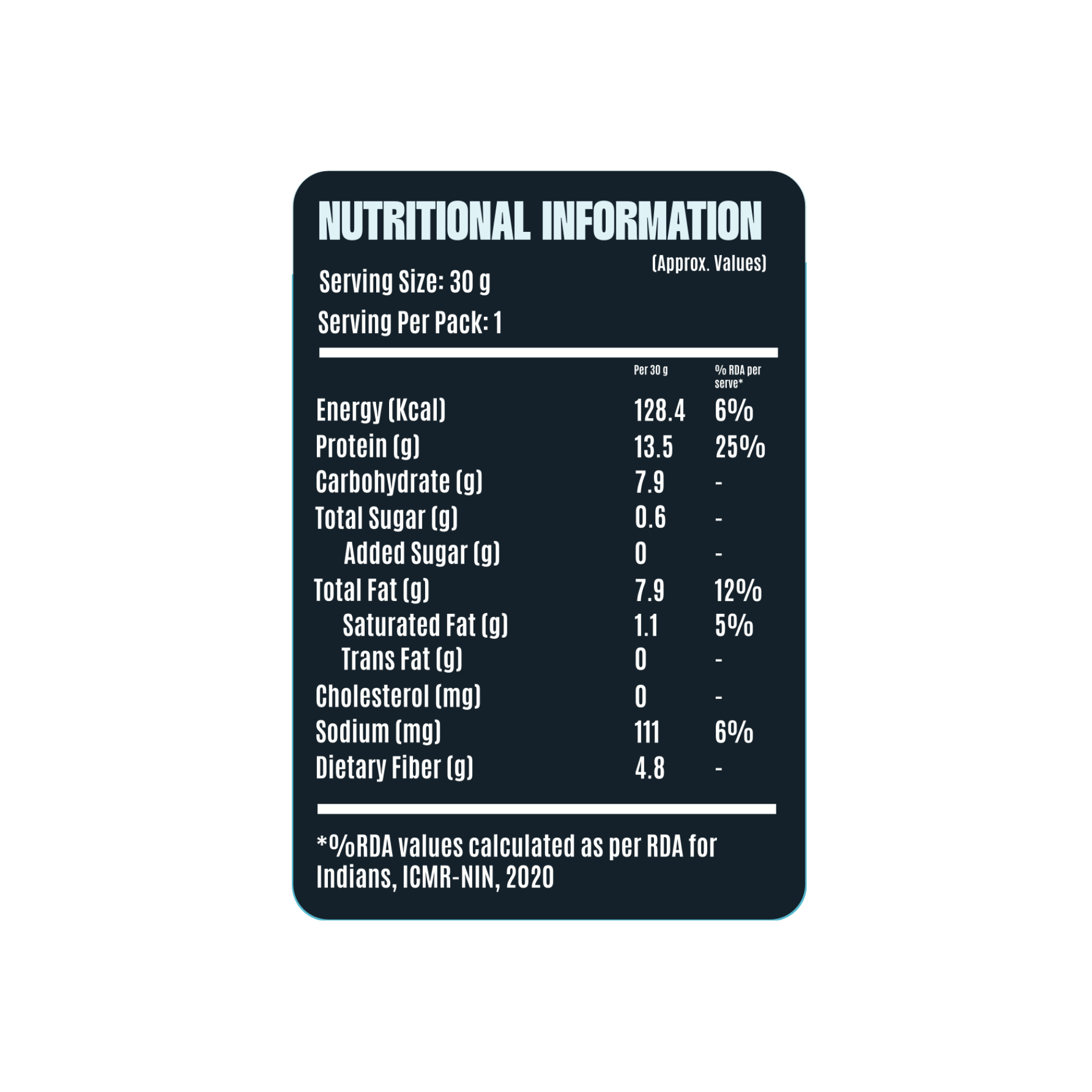 *Approximate values. %RDA as per ICMR-NIN 2020.